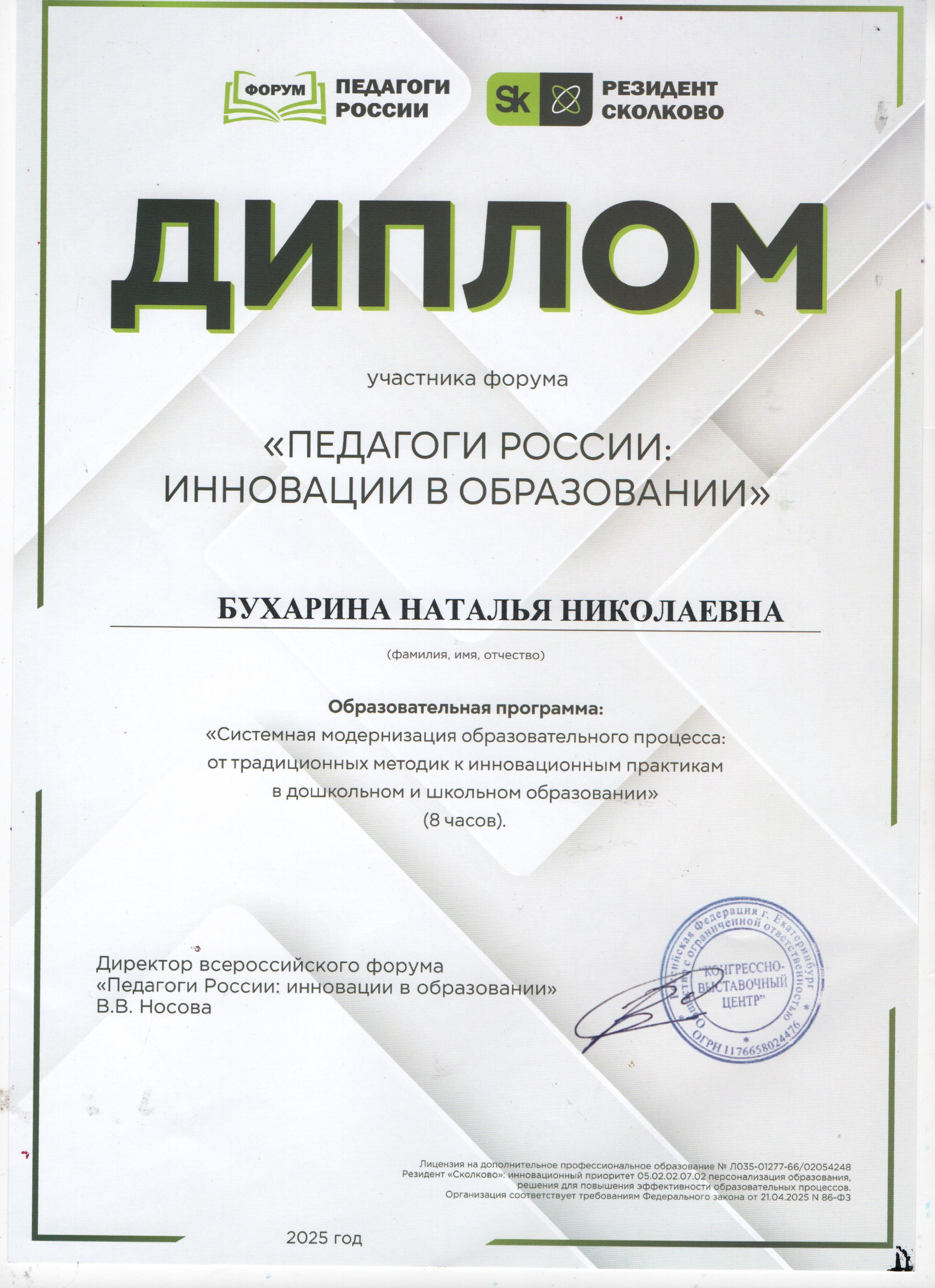 Диплом участника форума "Педагоги России: инновации в образовании" г. Новосибирск, 2025 год